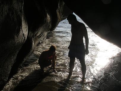 Caly, segundos antes de la foto anterior, mirando dentro del barco hundido que, por cierto, estaba repleto de roncadores (peces plateados espectaculares).